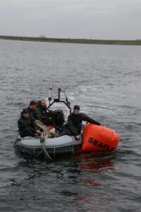 Ik kijk op een diepte van een meter of twaalf in de Grevelingen in rustig, kalm, redelijk helder maar heel koud water naar beneden. Vanuit de diepte onder mij komen bellen omhoog. Ik wacht hier, ik ben niet verder naar beneden gaan. De kans dat ik iets zie is bijzonder klein, laat staan dat ik een goed belicht foto of filmpje kan maken. Daarbij, ik wil het risico niet nemen: de mijn ligt op een diepte waar ik me niet comfortabel voel met mijn equipment en skills. Hier ligt de grens vandaag en zoals altijd wordt die volledig gerespecteerd.